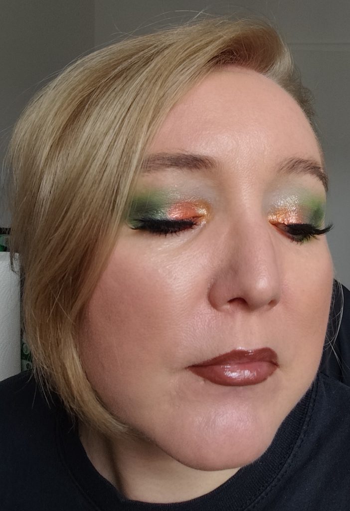 Über dem Innenwinkel habe ich Spirits & Spells aufgetragen und in das grün verblendet. Eigentlich wollte ich mich auf die Beigetöne konzentrieren.. aber dann ging alles nochmal in eine andere Richtung.