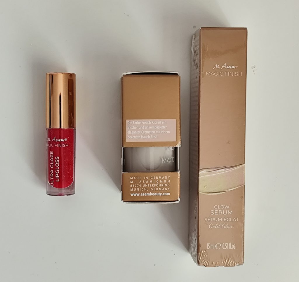 In einem Organzasäckchen hatte ich noch 3 kleinere Produkte.. ein Glow Serum, einen beigen Nagellack und ein rotes Lipgloss. Über das Glow Serum freue ich mich, mit dem Rest kann ich nicht so richtig viel anfangen. Ich trage selten so ein leuchtendes Rot. Aber kann man ja Mal in den Urlaub mitnehmen.