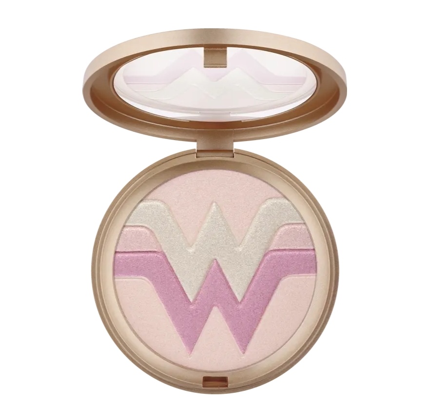 Der Wonder Woman Multi Glow Highlighter. 8g kosten hier 4,95€.. Er geht sehr in eine goldene Richtung und ist ziemlich hell. Ich würde ihn niemandem empfehlen, der Dunkler als Medium ist. Er glitzert auch ein bisschen, obwohl ich in der Verpackung, die übrigens sehr schwer ist und hochwertig wirkt, nicht sehen kann.