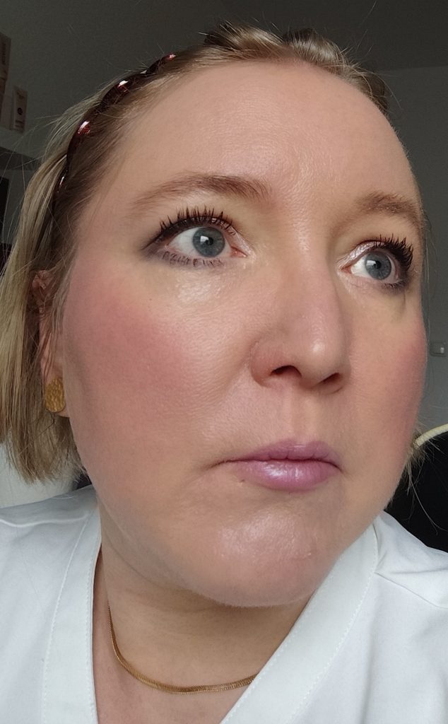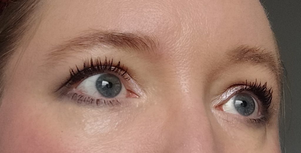 Mit dem matten Frau habe ich die Crease ausgeblendet und den äußeren Augenwinkel verdunkelt, außerdem habe ich es am unteren Augenlid außen verwendet.