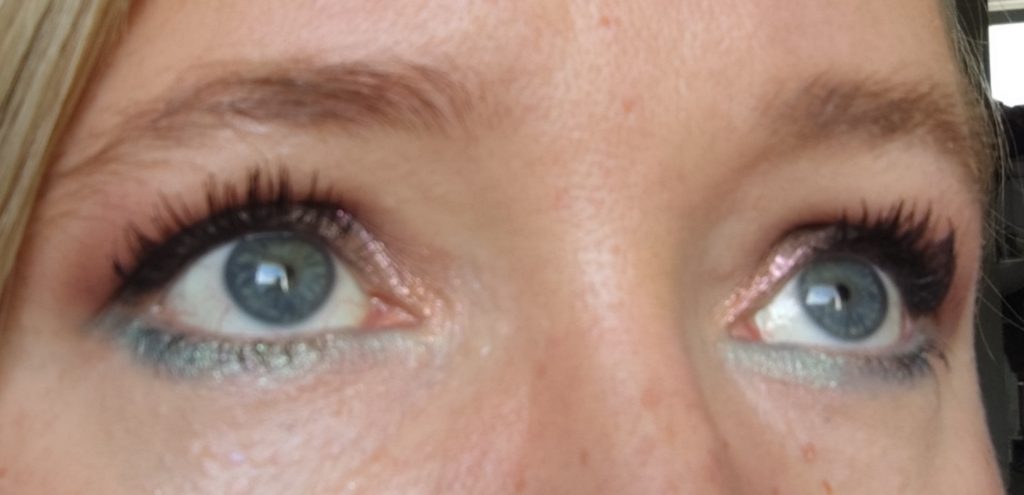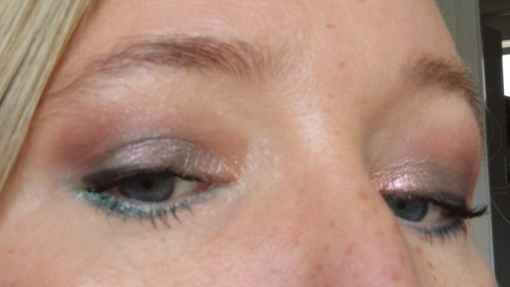 Jetzt zum Blau: das schimmernde Blau habe ich am unteren Wimpernkranz aufgetragen.