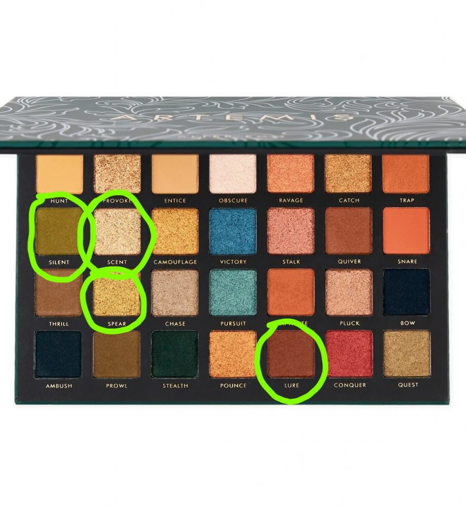 Ich habe Lure in der Crease über dem beweglichen Lid ausgeblendet. Danach habe ich auf der äußeren Hälfte vom Augenlid Spear aufgetragen und auf der inneren Hälfte Scent.
