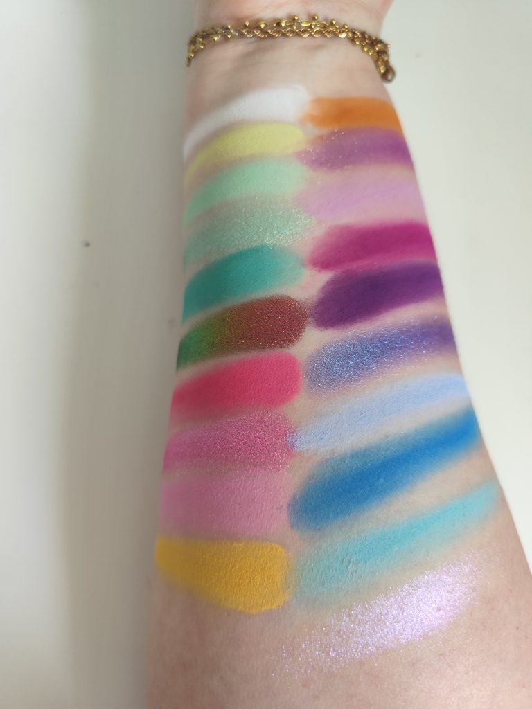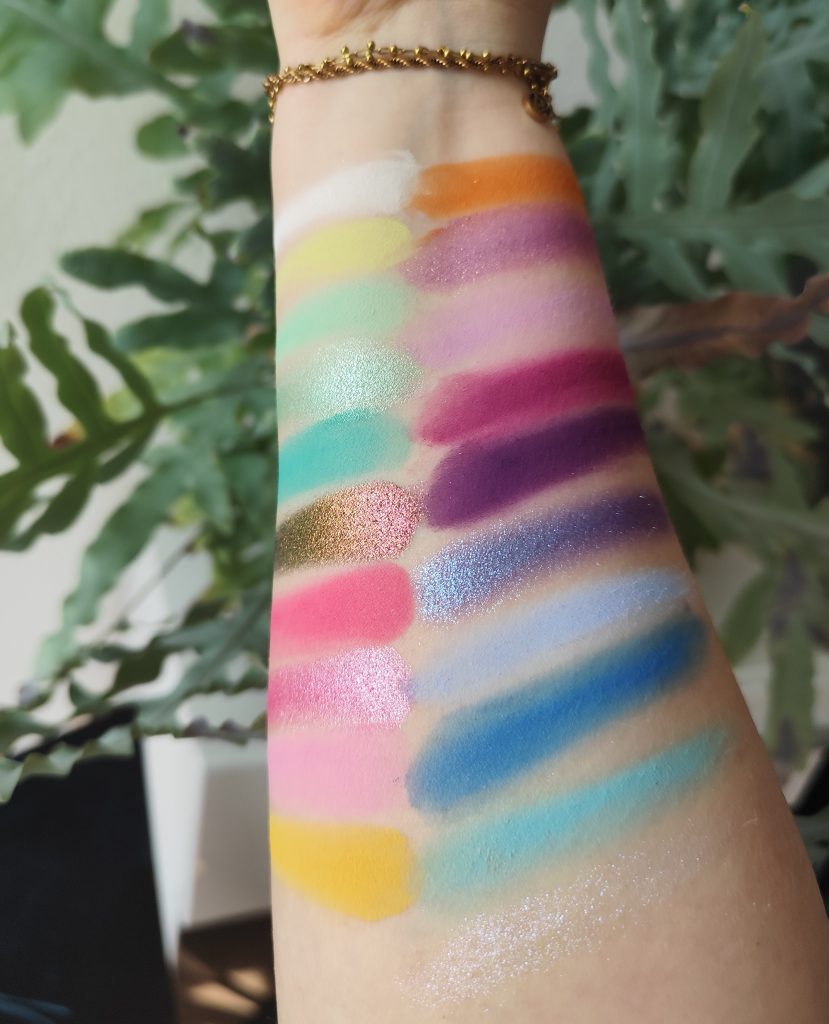 Die Palette ist eine richtig schöne Rainbow Palette mit der man viel anstellen kann. Und wem das zu bunt ist der kann noch ne kleine 5er oder 6er Lidschattenpalette mit Brauntönen dazu neben und das ganze Alltagstauglich gestalten (z.B. eine von den Tiny Treasures Palette von Catrice oder die Mini Sculpt von Natasha Denona).