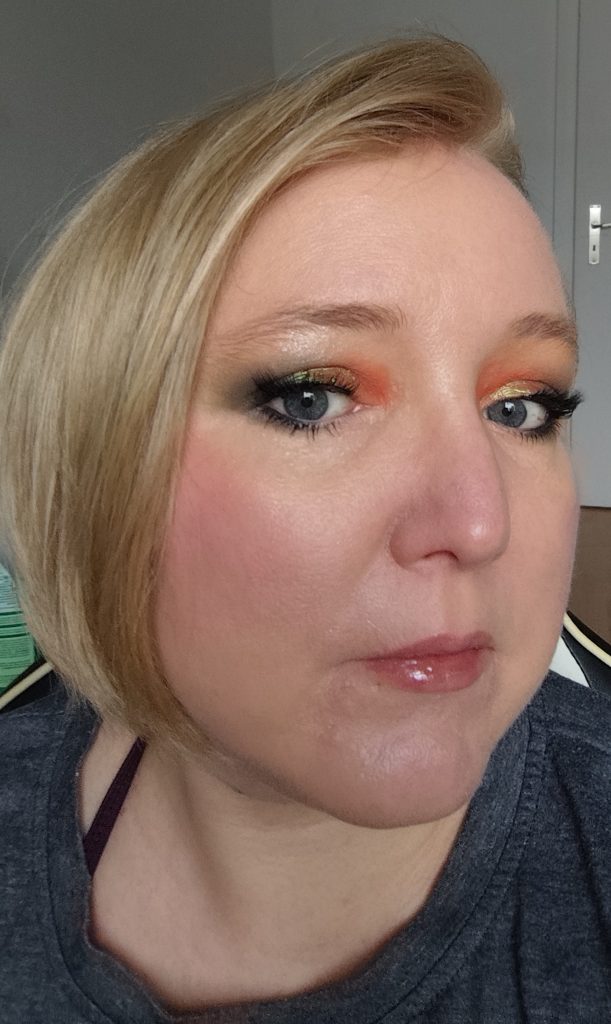 Gestern habe ich meine Pinsel gewaschen, also ist der Look heute hauptsächlich mit etwas größeren Blenderpinseln entstanden.