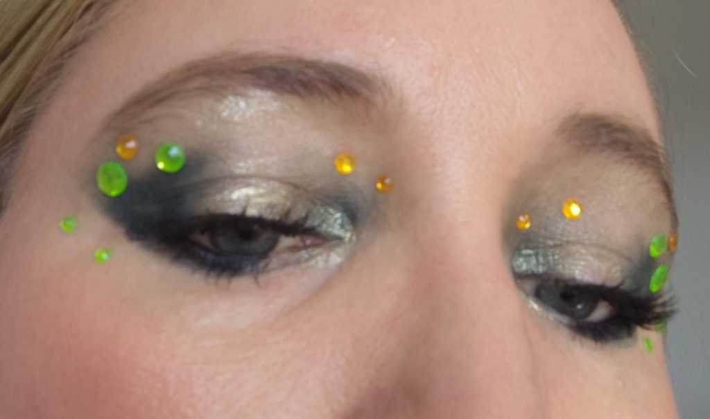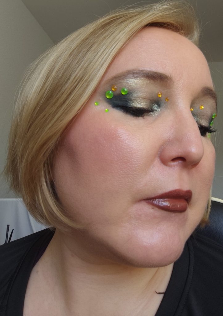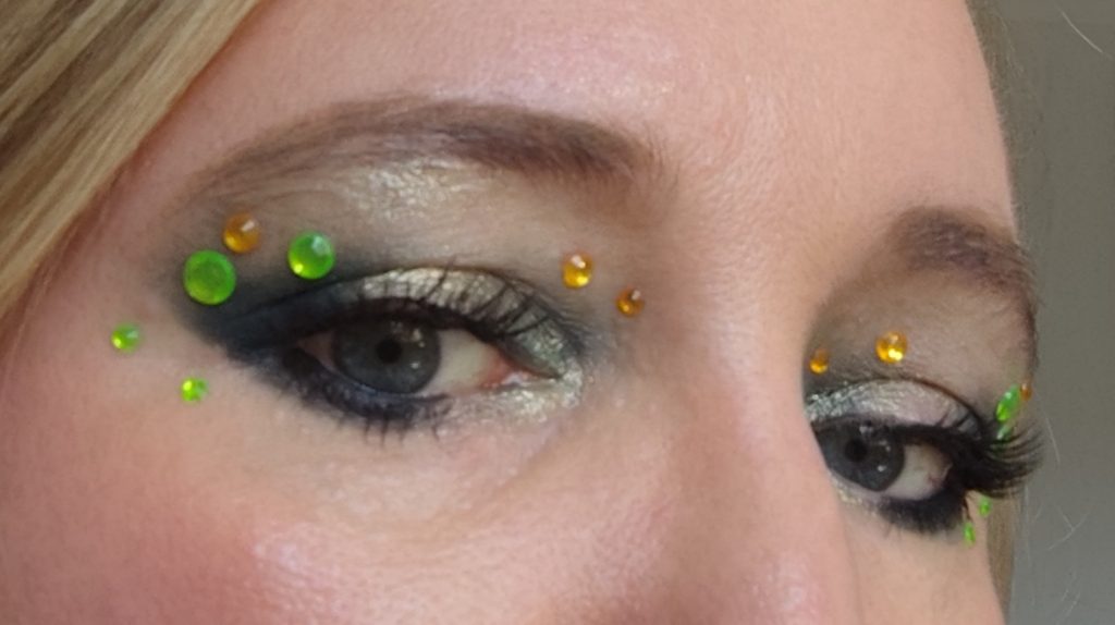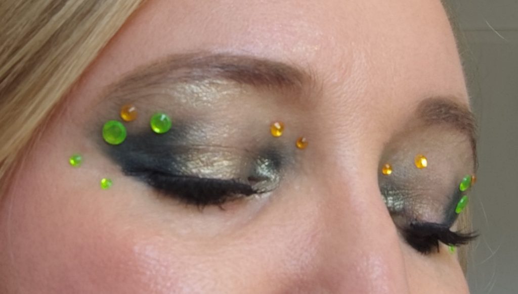 Dieses Mal wollte ich ein Halo-Eye mit den Grüntönen schminken und Mal ein bisschen mit Glitzersteinchen spielen.