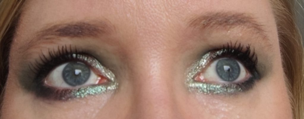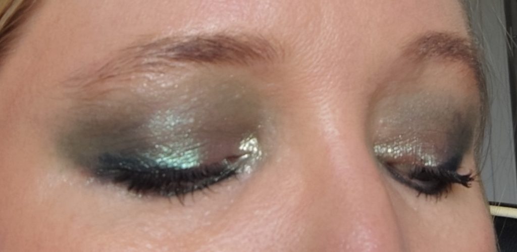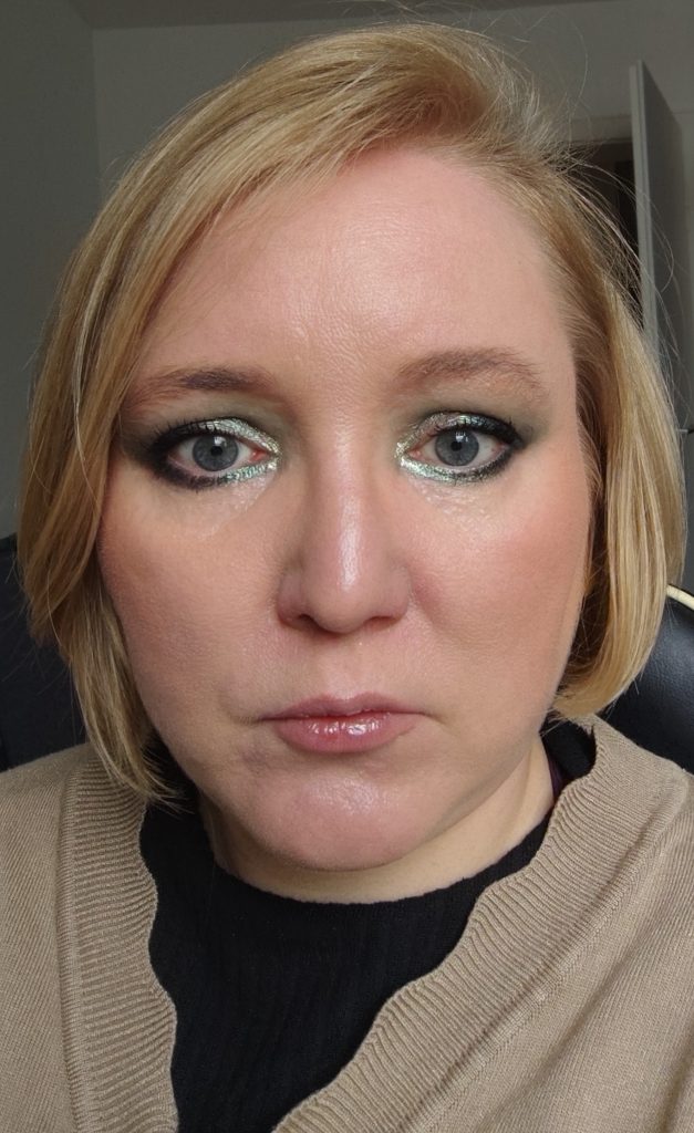 Ich muss sagen vom matten Grün hätte ich mir einfach noch eine hellere Variante gewünscht. Ich habe mit einem Blenderpinseln Loyal über dem beweglichen Augenlid das Grün verblendet und auch mit nem kleinen Pinsel am unteren Wimpernkranz bis ca. zur Mitte.