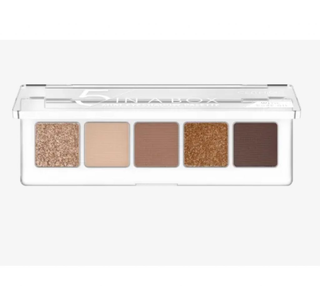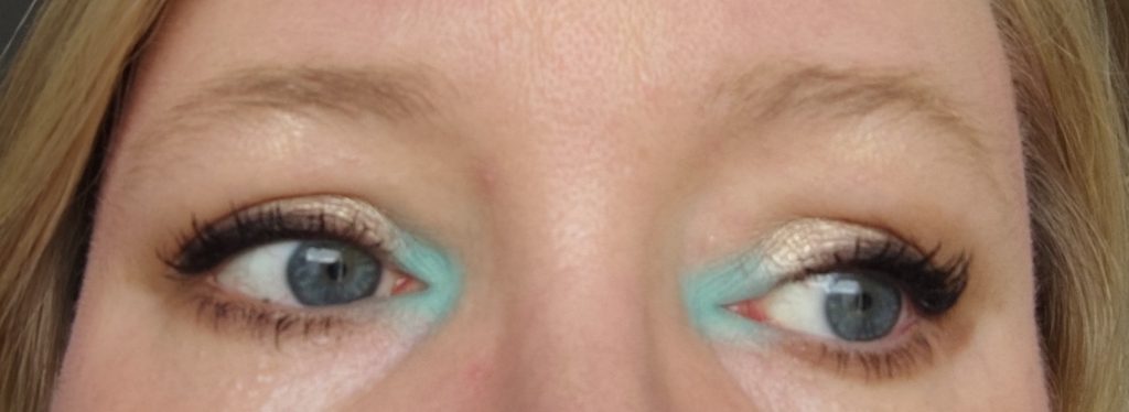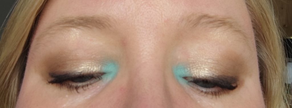Ich habe einen bunten, aber wie ich finde trotzdem noch einen halbwege alltagstauglichen Look mit „Making Waves“ am inneren Augenwinkel geschminkt. Dazu habe ich die 5 in a Box von Catrice in 010 golden nude Look genommen.