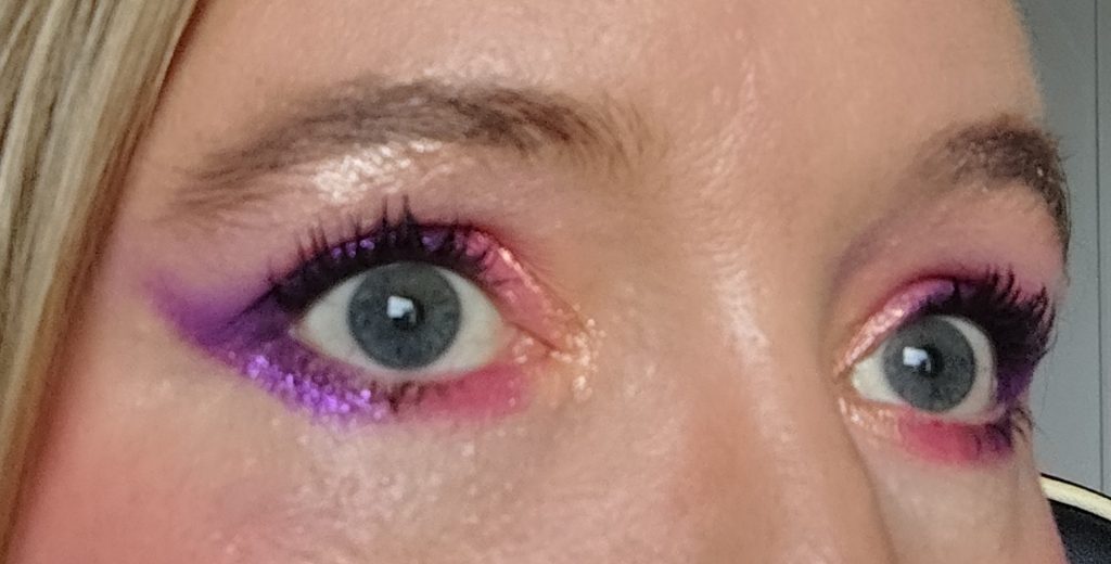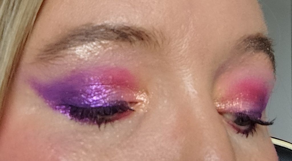Unter dem Auge habe ich den selben Farbverlauf wie oben geschminkt. Ich habe auf den Übergang zum Wing auch noch die Farbe Baubles aufgetragen.
