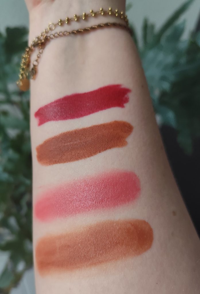 oben seht ihr die beiden Lippenstifte geswatcht und unten die beiden Cream Blushes.