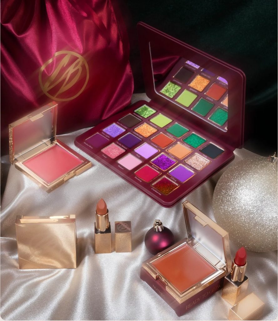 Man bekommt hier 2 Cream Blushes, 2 matte Lippenstifte und die ziemlich bunte Weihnachtspalette.