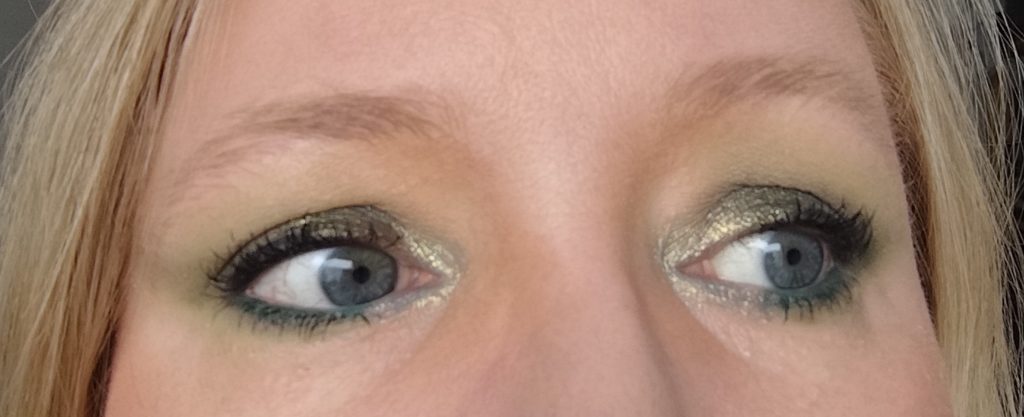 Zum Schluss habe ich mit einem grünen Eyeliner (der Maybelline Tattoo Liner in Hunter Green) die untere Wasserlinie nachgezogen. Für die obere Wasserlinie habe ich den Manhattan Endless Stay Waterproof und Schwarz genommen und damit noch einen Lidstrich über ungefähr die Hälfte des Lids gezogen.