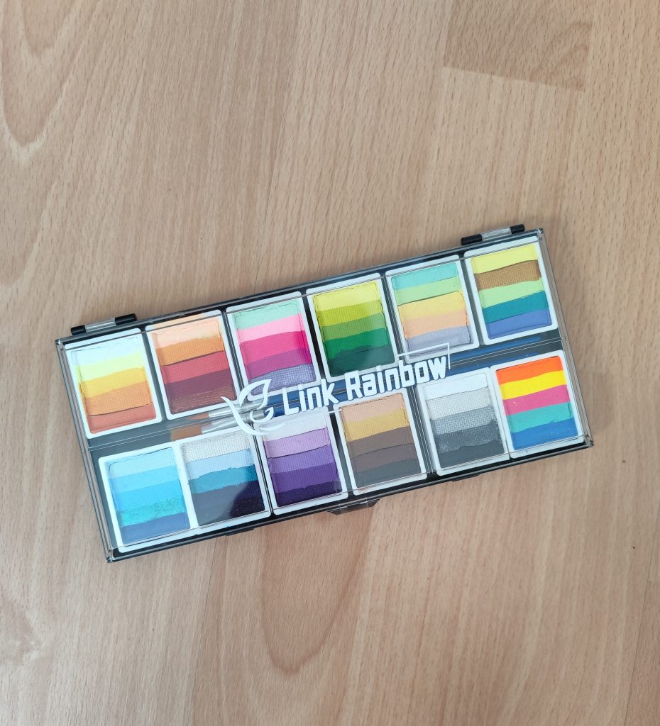 Wasseraktivierbare Eyeliner-Palette von Temu oder AliExpress. Ich hatte solche Liner-Paletten zuerst auf Instagram gesehen und dann im Online Chinamarkt alles danach abgesucht, weil ich unbedingt so eine wollte. Jetzt habe ich zwei und die werden wahrscheinlich ewig reichen. Ist auf jeden Fall cool, wenn man Mal eine besondere Farbe tragen will. Normalerweise benutze ich für Eyeliner sonst gerne Kanalstifte. Ich habe selten Probleme, dass die creasen. Falls doch gebe ich da gerne Lidschatten mit einem schmalen Pinsel drüber.