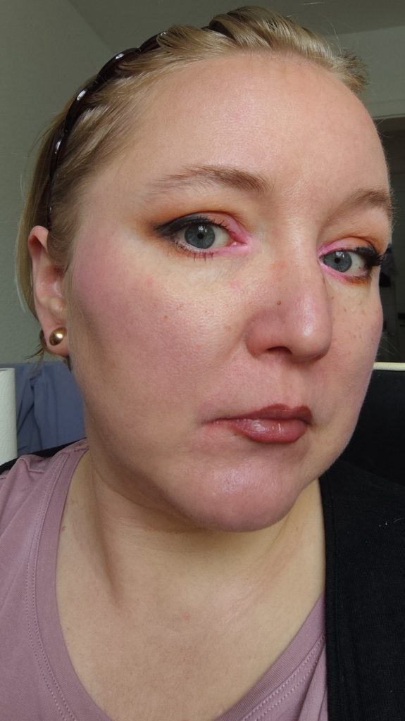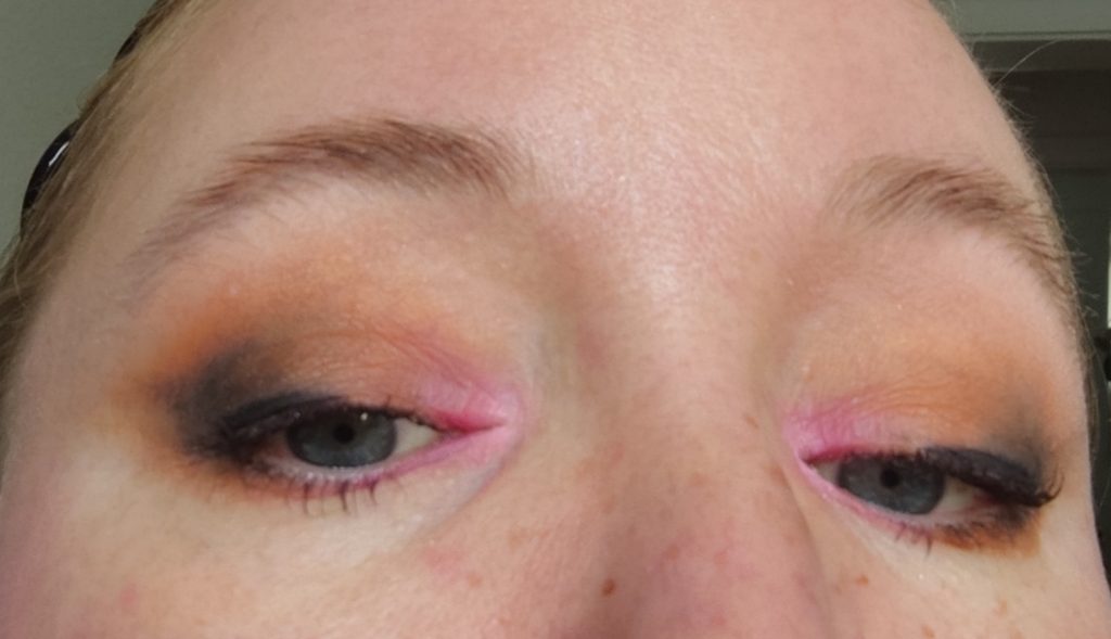 Auf dem Lid und am unteren Wimpernkranz habe ich Sweet Marie genommen, verdunkelt habe ich den äußeren Wimpernkranz mit Seriously.