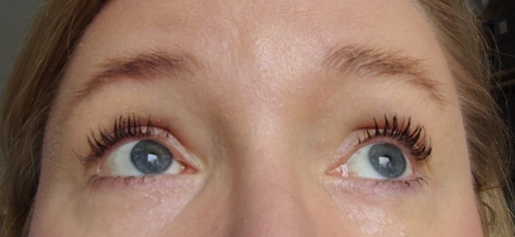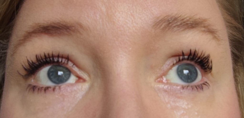 Ich habe auf der linken Seite die Surpreme Recharge aufgetragen, auf der rechten Seite zum Vergleich meine momentane Lieblingsmascara.. die Panorama Mascara von L’Oreal.