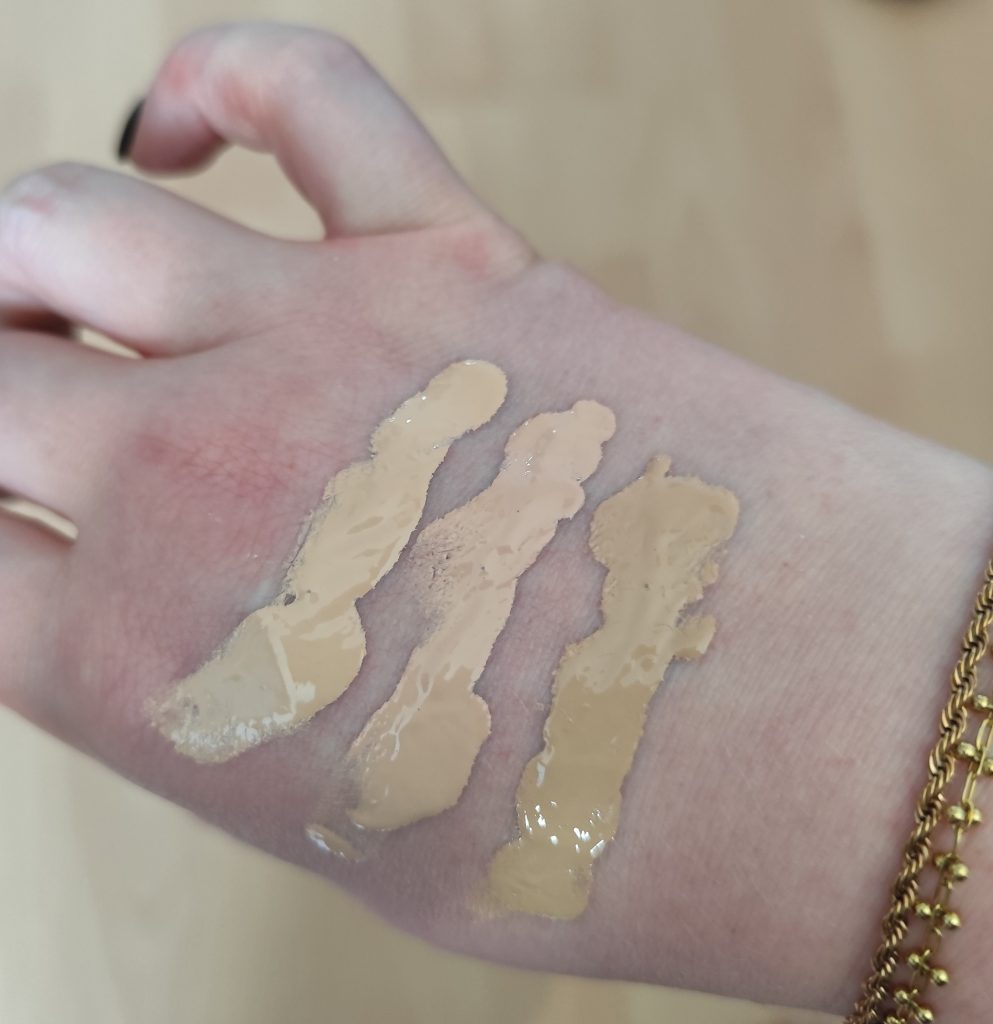 Hier habe ich die Farben 20, 30 und 40 genau in dieser Reihenfolge geswatcht. Ihr seht schon die Foundation ist relativ flüssig.