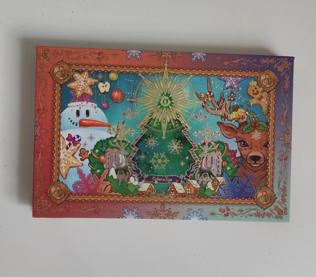 als erstes war eine Leerpalette mit Weihnachtsmotiv drin. Ich muss sagen, dass es Motive gegeben hätte, die mir besser gefallen, aber das gab’s ja gratis oben drauf.