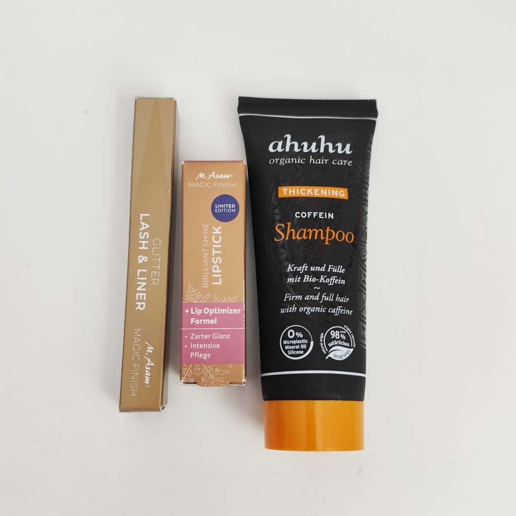 Als letztes waren 3 Produkte in einem Organza-Säckchen enthalten, ein weiteres Shampoo, ein Lippenstift und ein Eyeliner/Glitzer Topper für Mascara.